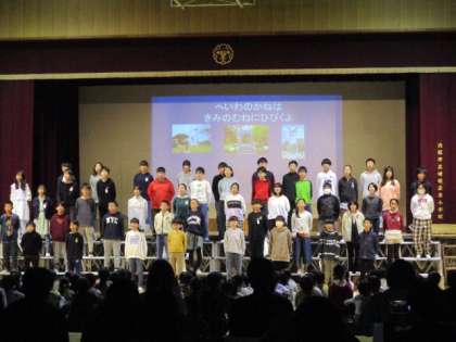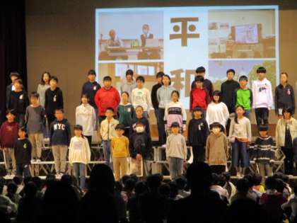 施設見学で学んだこと、戦禍を潜り抜けてきた人たちの重みのある言葉の数々を通して、身近にあるものや平和の尊さについて発表しました。今なお戦後の爪痕が残り続ける沖縄の思いが、6年生の澄んだ歌声を通してひしひしと伝わってきました。