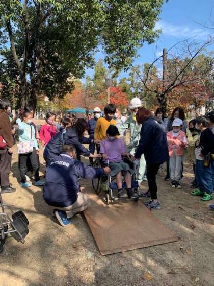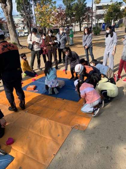 子ども達は、これまで総合の学習で「防災」について大切な命を守る行動について調べたり、話を聞いたりしてきました。この活動でも、どの子も積極的に取り組み、意識の高さがうかがえました。最後に、会館でアルファ米のハヤシライスを食べ、お土産も頂き、大満足の体験活動を終えました。