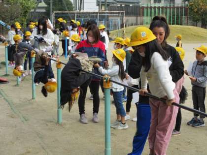 運動委員会や保健委員会の高学年児童が「検定員」を務め、レベル別に技が書かれたチャレンジカードを見て合否のチェックをしていきます。