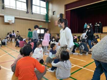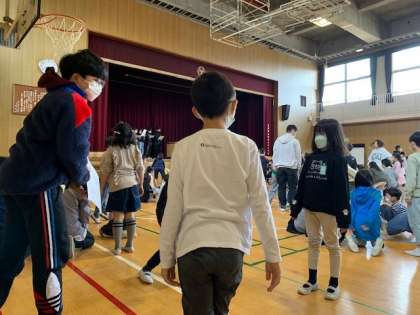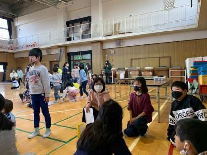 「チッチッチッチ バリチッチ!」という集会委員の掛け声を聞いたあとに、たてわり班の何人かがスクッと立ち上がります。