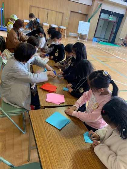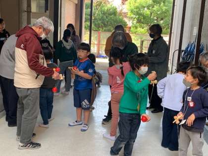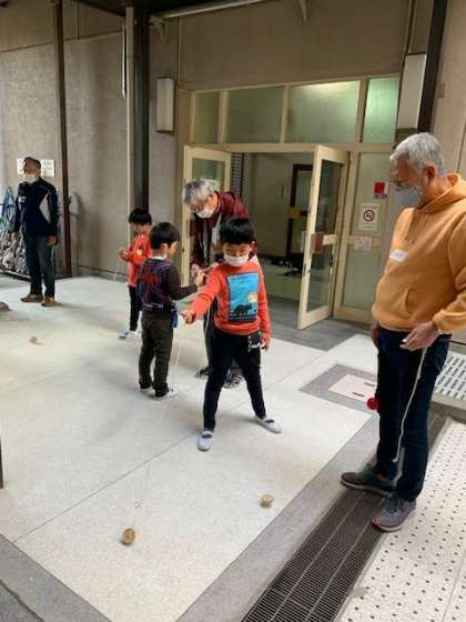 地域の方々の中には、いつもお世話になっている見守り隊の皆様もおられ、親しげに話す1年生の姿もありました。交流会が終わった後、晴寿会の方々は「子ども達の元気な姿を見るのは久しぶりでした。」「子ども達から元気をもらいました。」と言ってくださいました。1年生の元気な笑顔があふれた楽しい時間でした。