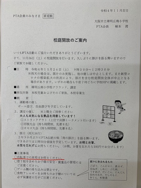 11月25日(金)明日のPTA校庭開放について
