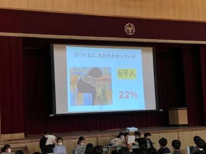 プレゼン発表の中には、子どもたち自身の姿勢に関する意識調査の結果もありました。