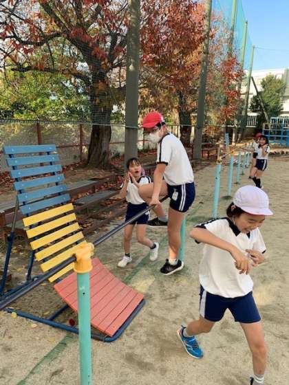 6時限目、運動場の片隅から子どもたちの賑やかな声が聞こえてきました。