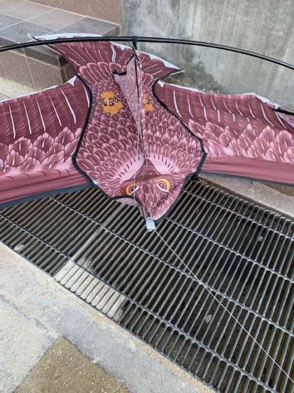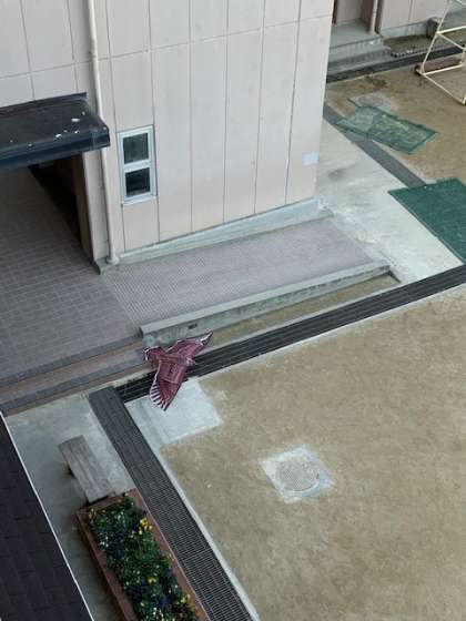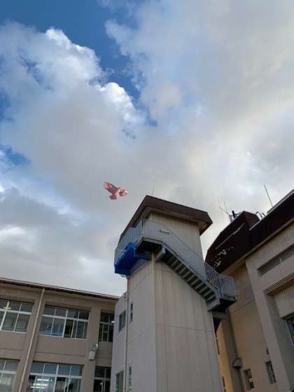 放課後、講堂の上方にその姿が認められないので、探してみると、糸が切れて落下していました。