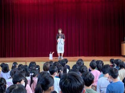 みんなが当たり前に幸せに暮らしていく権利があるというお話や、学校生活の中でも一人ひとりの人権が守られるために学校安心ルールがあるというお話などがありました。