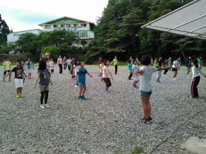 3日目、晴れ。いよいよ林間学習も最終日となりました。少し疲れ気味な顔をしている児童が見られますが、みんな元気です。体を動かして少しずつ、心も体もほぐれていきます。今日も1日、がんばります。