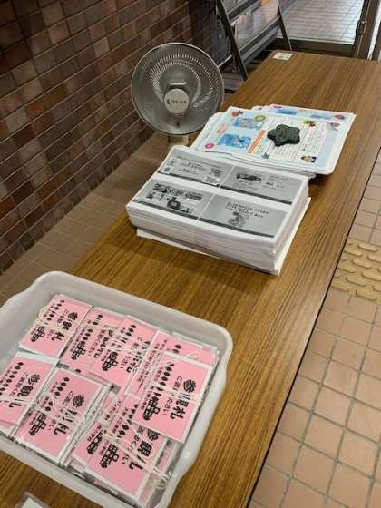 玄関の受付では、先日区役所で開催されましたPTA地域研修会の資料をお配りしております。