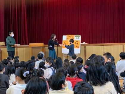次いで、百と十の位の数字の両方を当てた人に、「おしい!で賞」」が贈られ、最後にすべての数字を当てた人に「おみごと!ピタリ賞」が贈られました。
