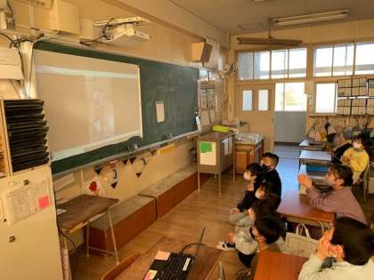 今日は朝の会の時間に体育委員会が撮影した大縄(8の字跳び)動画を視聴しました。