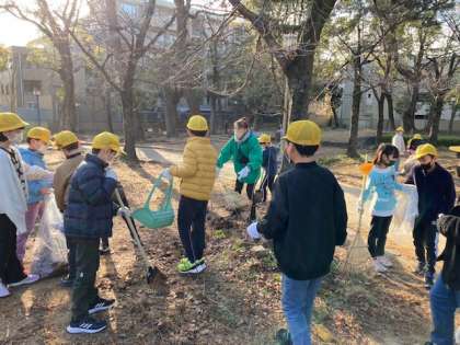 総合の学習の一環として地域清掃にも取り組む3年生。