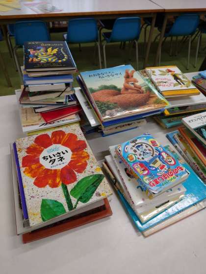 本校の図書ボランティアさんたちが、本日「小学校のための本のバザール」に赴き、たくさんの本を持ち帰ってくださいました。