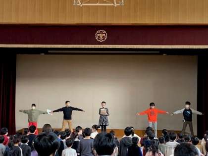 まずは、3種のポーズとそのとり方を集会委員のメンバーがみんなに伝授。