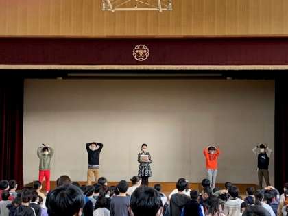 今日の児童集会のゲームは「集会委員とかぶるな!」。