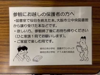 図書室で役目を終えた本、大阪市立中央図書館から譲り受けた本などを、みなさんに持ち帰っていただき、活用していただこうという企画です。