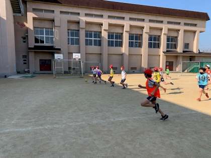 穏やかな小春日和の中、運動場のあちらこちらでチームごとに分かれて練習をする5年生。