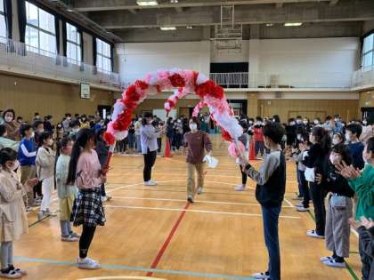 今年の祝う会では、卒業生の退場時に一工夫凝らしています。