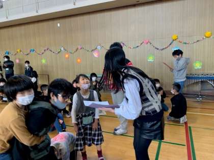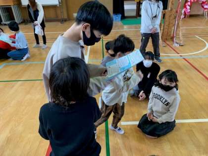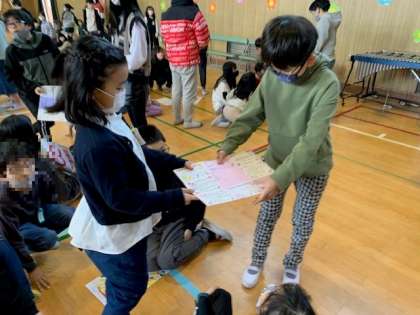 ゲームの後は、たて割り班のみんなから、6年生にメッセージカードをプレゼント。