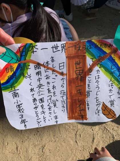 グループごとに子ども達が考えたお礼の品々はどれも、気持ちのこもった素敵な物でした。地域の方々は「一生大切にします!」とたいへん喜んでくださりました。