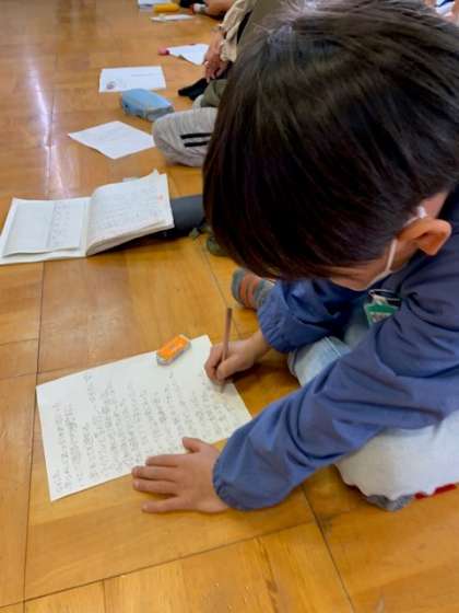 今井さんの口から語られることや、白黒フィルムの中に映る昭和時代の様子などを、子どもたちはたくさんメモに取りました。