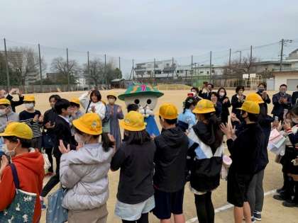 記念写真撮影、歓送時の様子。