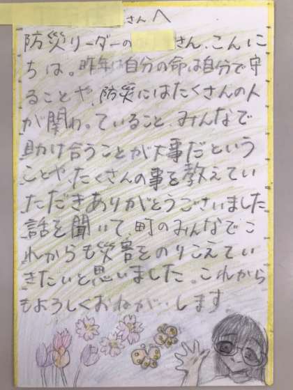 色々と教えていただいたお礼とその後の自分たちの活動を報告するものや、自分たちが学んだことを地域の方にも広めたいといった思いが、手紙には込められていました。