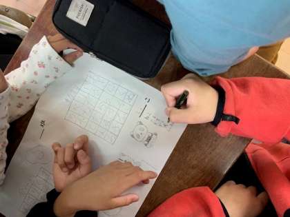 それぞれが見つけた言葉を言い合いながら、和気あいあいとゲームを進めていました。