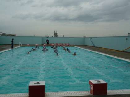 昨日の5年と6年のプールに続いて、本日は1年と2年がプールに入りました。太陽のない曇り空だったので、少し寒かったようです。