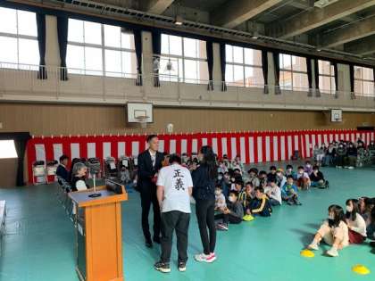 この会に集まってくれた子どもたちから、対象の職員一人一人に花束とメッセージが贈られました。