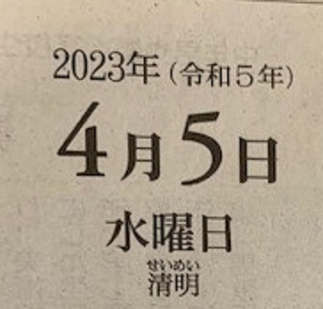 4月5日(水)今日は「晴明」ではなく、「清明」です