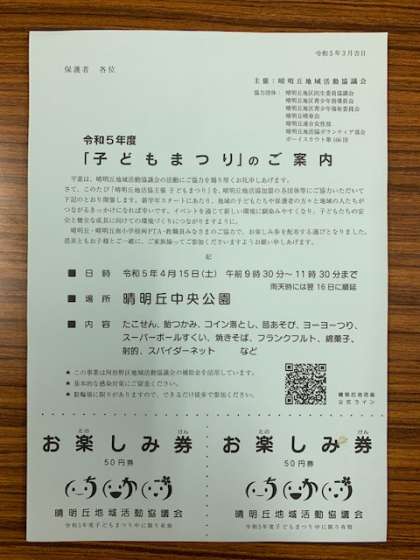 令和5年度「子どもまつり」は、4月15日(土)に予定されています。