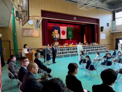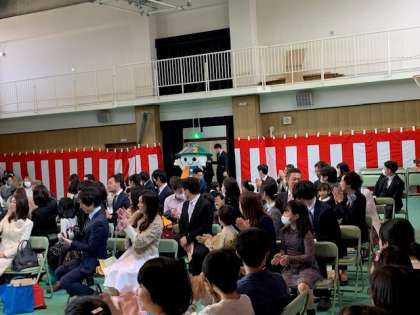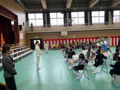 1年生を担当する教職員紹介に続いて、あのマスコットキャラクターが登場。