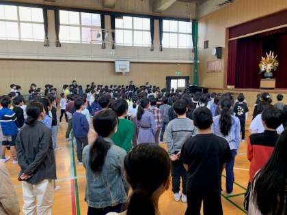 始業式の最後には、みんなで元気よく校歌を歌いました。