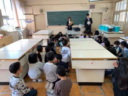 3年生は家庭科室で、5年生は図書室で、転入生の紹介とクラス分けを行いました。