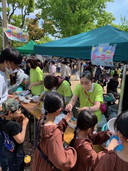 大人気のヨーヨー釣り、スーパーボールすくいは、途切れる事なく子ども達が訪れ、PTA役員の方々は大忙しでした。裏方では、お父さん方や教頭先生、教員がヨーヨー作りに奮闘しました。