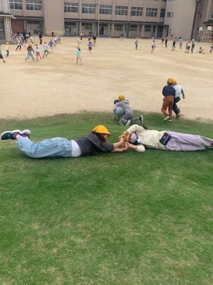 芝の養生に尽力してくださっているのは、本校の元PTA会長さんです。