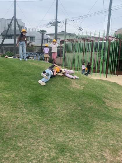 3月から芝を養生していた築山の柵が、遂に取り払われました。