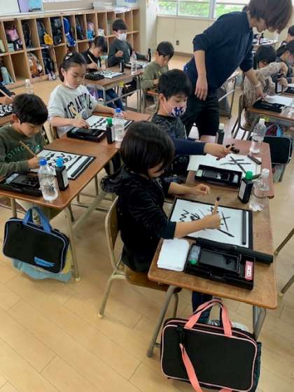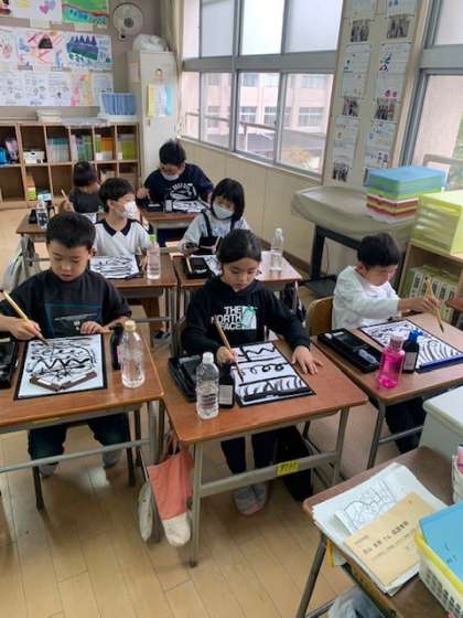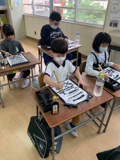 今日は、太筆を使って、力の入れ方を変えることで字画の太さが変わることを体感しました。