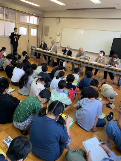 特に、親元を離れてみんなで泣いたや疎開は全て辛かった、食べることが1番辛かった、石鹸がなくシラミやノミが身体に湧いていた等、当時の小学生が経験したきびしい生活を聞いた子ども達は、驚きの声をあげていました。