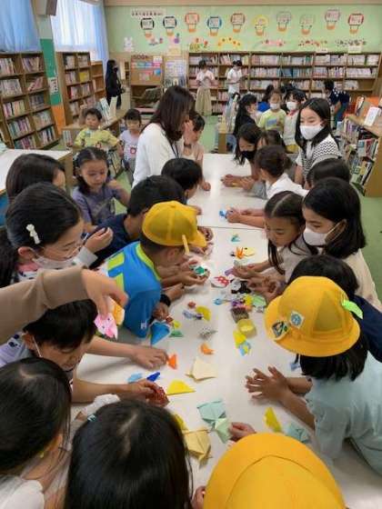 今年も図書ボランティアさんの図書館開放は、大人気です。可愛い折り紙を頂いた子ども達は、大喜び。