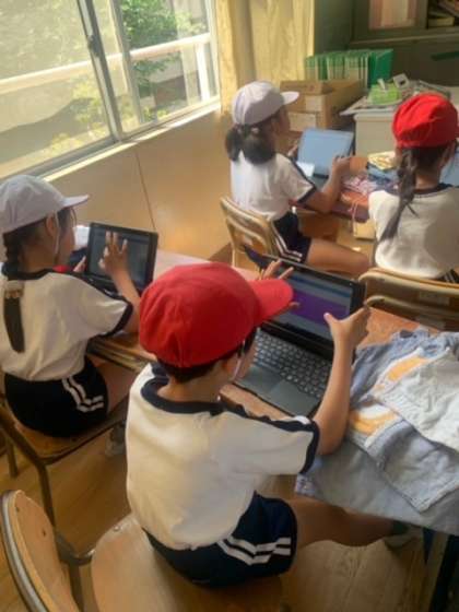 先日、生活科の学習で野菜の植え付けを終えた2年生。