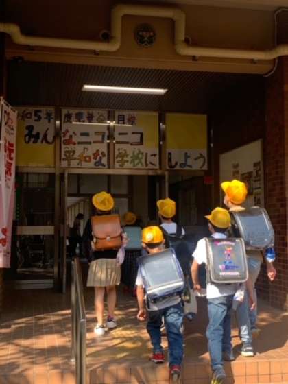 登校してきた子どもたち、思わず見上げてしまっていました。