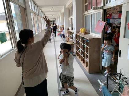 1時間目の避難訓練からスタート。
