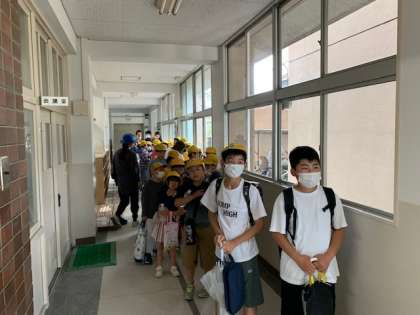 災害時には保護者の方のお迎えが原則必要となりますが、集団下校が必要な場合は、教職員が付き添います。