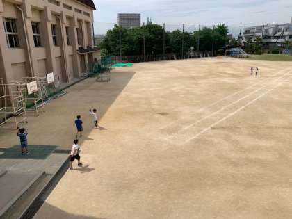 校内にある無機質な物に、オバケの命を吹き込んでいる様子。