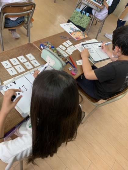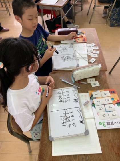 4桁の数同士を足したり、引いたりの筆算をします。が、答えは万の位が出ないようにしたり、同じ数を式中に使わないようにしたりと、いろいろと制約があります。