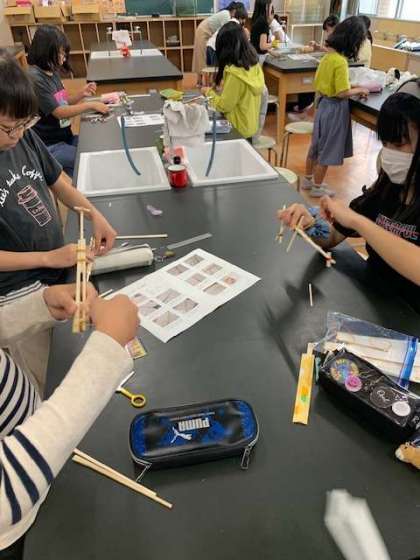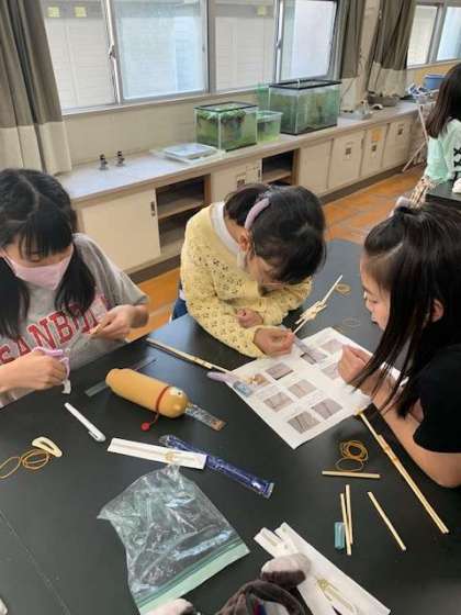 ゴムのくくり方が少々難しく、お互いに教え合いながらの製作です。