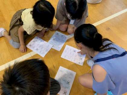 開会式の後は、小グループに分かれて、お店屋さんめぐりの順番を話し合います。
