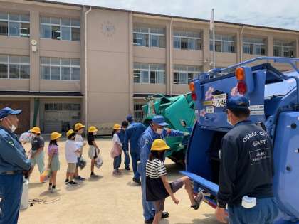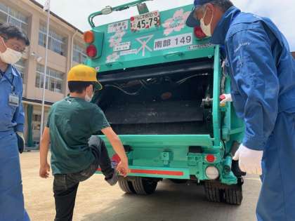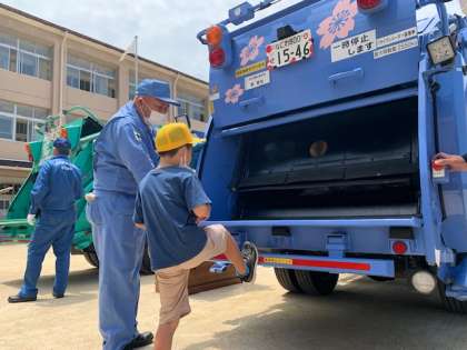 他にも迫力の粗大ゴミ収集の実演を見させていただいたり、パッカー車から流れ出るオルゴール音と収集物の違いについて教えていただいたりと、たっぷり学習することができました。