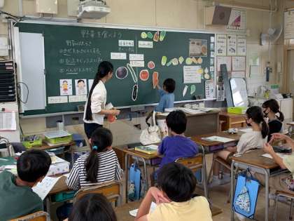 野菜を食べたらどんないいことがあるのか、野菜はどんな種類に分けられるのか、などについて学習しました。